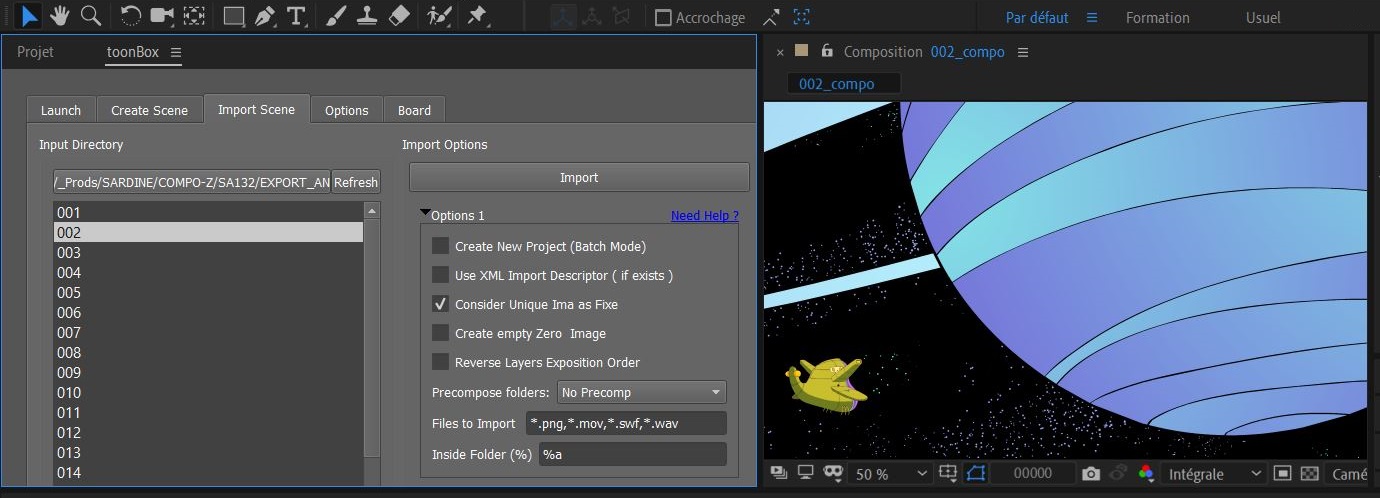 Ce plug-In permet de faire de l'assembly et de l'import de scènes directement dans Adobe After Effects.